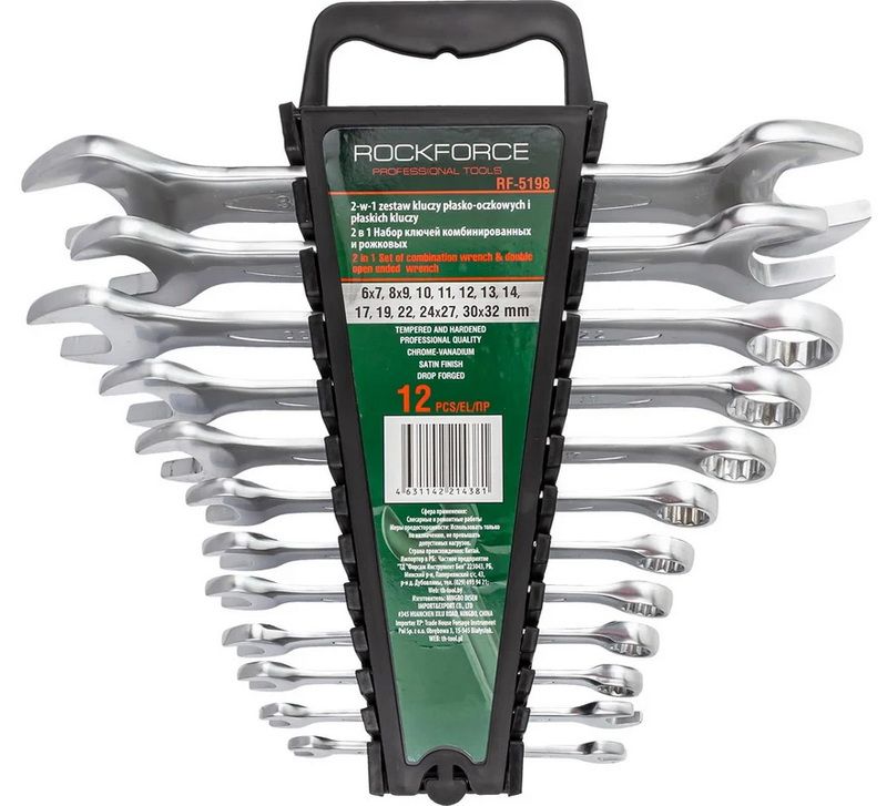 Setul de chei combinat și fix cu 12 piese pe suport din plastic de la brandul ROCKFORCE reprezintă cel mai răspândit și popular tip de cheie, combinând într-o singură piesă profilul fix și cel închis. Utilizarea celor două profile de aceeași dimensiune face instrumentul universal. Principalul avantaj al setului este posibilitatea de a lucra în locuri greu accesibile.