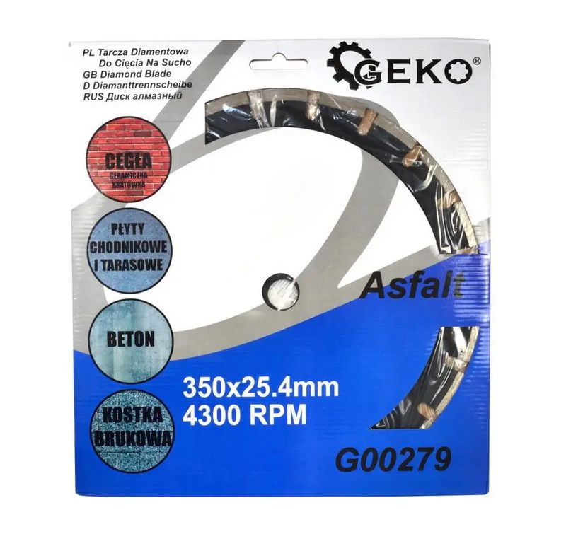 Disc diamantat GEKO G00279 este un instrument profesional cu segmente, proiectat pentru tăierea eficientă a asfaltului și betonului proaspăt. Datorită legăturii moi, discul se auto-regenerează în timpul utilizării, menținând constantă performanța de tăiere și viteza de lucru.