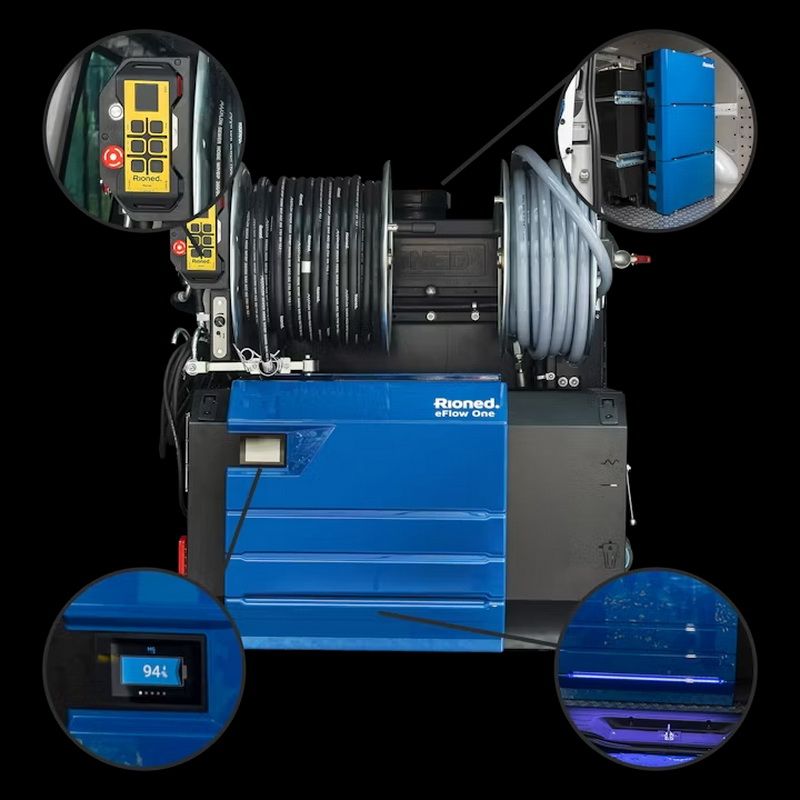 Instalația electrohidraulică Rioned eFlow One este o soluție modernă pentru curățarea profesională a sistemelor de canalizare și drenaj cu diametre de până la 300 mm. Modelul combină eficiența, mobilitatea și performanța ecologică, oferind o curățare de înaltă calitate fără emisii poluante.
