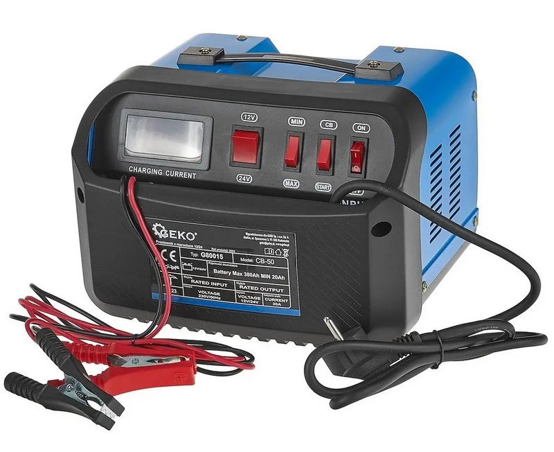 Redresor cu funcție de pornire GEKO CB50 (G80015) este un echipament multifuncțional destinat încărcării și pornirii acumulatorilor de 12 V și 24 V, cu capacități cuprinse între 20 și 380 Ah. Este potrivit atât pentru autoturisme, cât și pentru camioane, utilaje agricole și echipamente speciale.