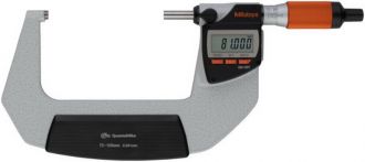 Micrometru digital Mitutoyo 293-143-40 din seria QuantuMike, cu domeniul de măsurare 75-100 mm şi rezoluţie 0,001 mm. Echipamentul oferă o viteză sporită de măsurare graţie filetului special (pas de 2 mm la o rotaţie a butonului) şi este proiectat pentru condiţii industriale, având protecţie împotriva prafului şi lichidelor de grad IP65.