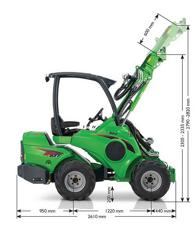 Modelul AVANT E-527 este ideal pentru agricultură, servicii municipale, depozite, ferme zootehnice și lucrări în spații interioare.