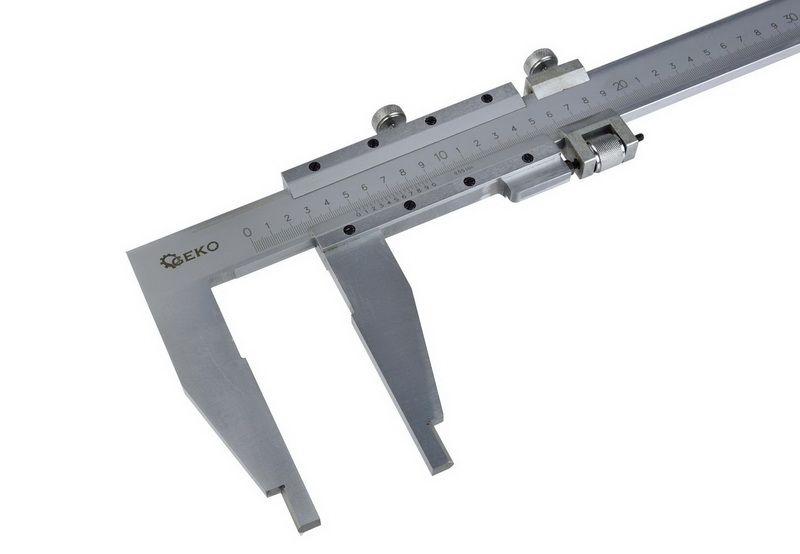 Șubler profesional cu lungime de măsurare de 1000 mm de la Geko, destinat măsurătorilor precise în industrie, prelucrarea metalelor, lemnului și altor materiale. Echipat cu mâner ergonomic și cursor ghidaj pentru reglare fină și precisă.